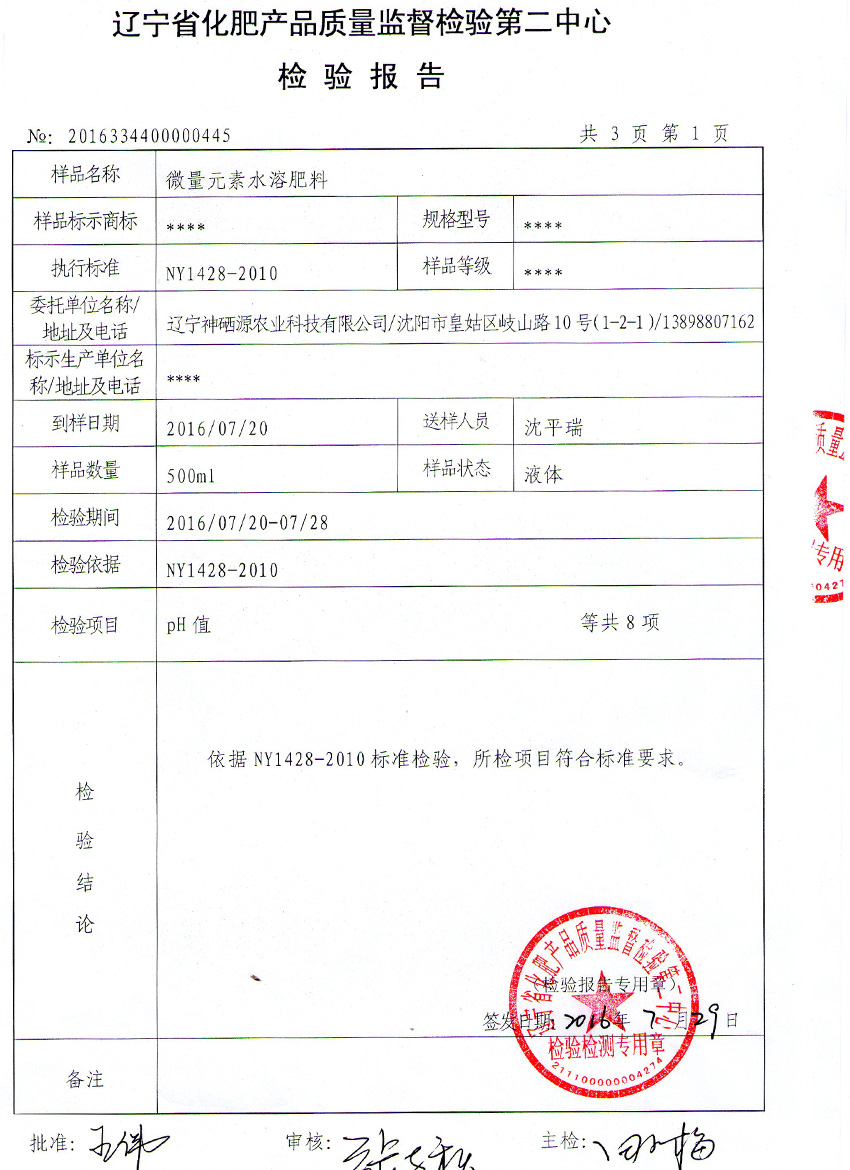 產(chǎn)品成分:Zn、Cu、Fe、Mn、B、Mo、Se、等微量元素,有機(jī)質(zhì)。